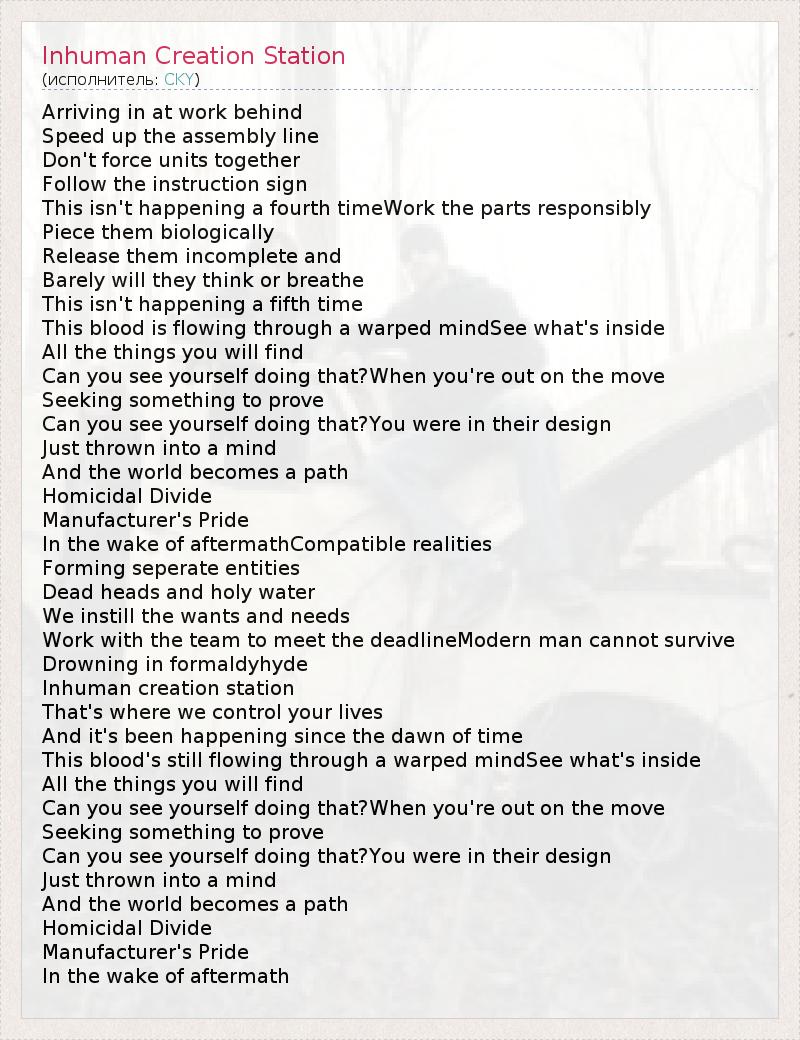 А как ты думаешь, о чем песня "Inhuman Creation Station" ?