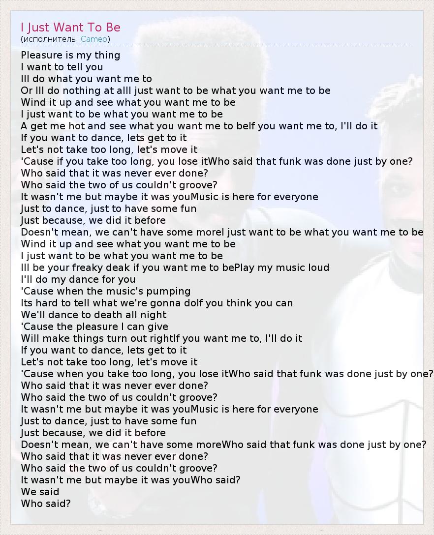 Doesn't mean, we can't have some moreI just want to be what you want me to be