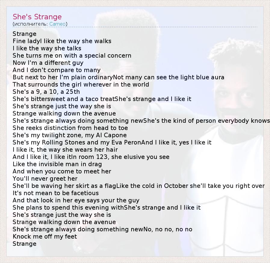 А как ты думаешь, о чем песня "She's Strange" ?