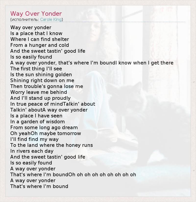 А как ты думаешь, о чем песня "Way Over Yonder" ?
