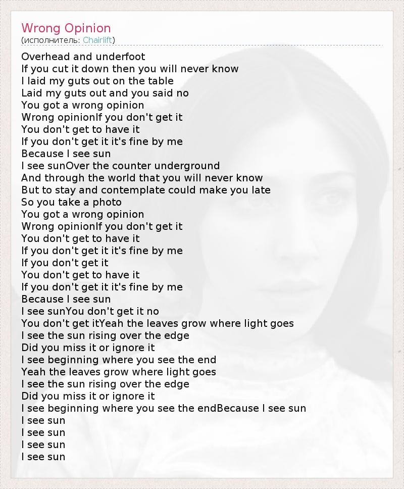А как ты думаешь, о чем песня "Wrong Opinion" ?