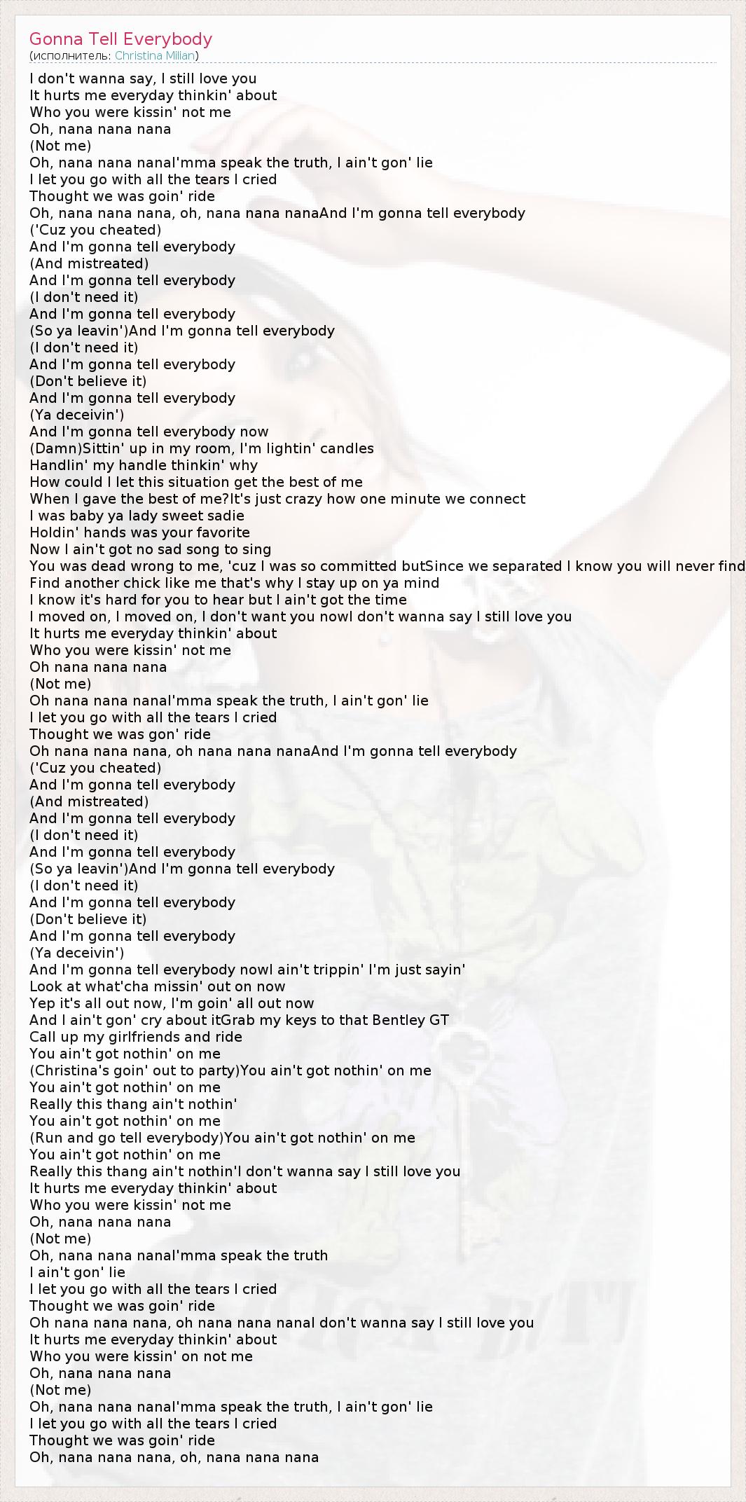 А как ты думаешь, о чем песня "Gonna Tell Everybody" ?