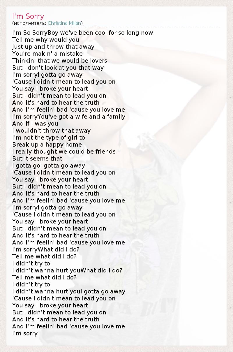 А как ты думаешь, о чем песня "I'm Sorry" ?