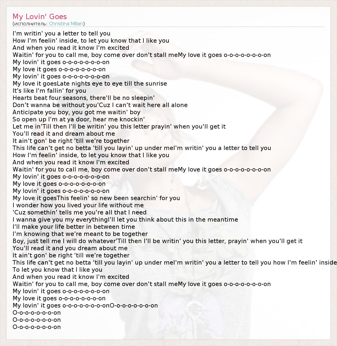 А как ты думаешь, о чем песня "My Lovin' Goes" ?