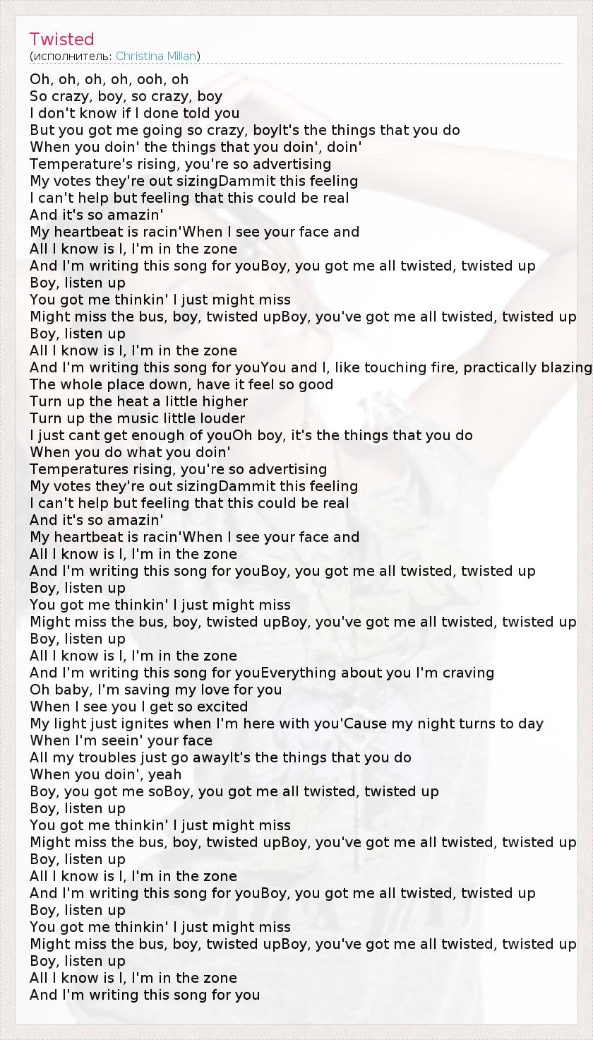 А как ты думаешь, о чем песня "Twisted" ?
