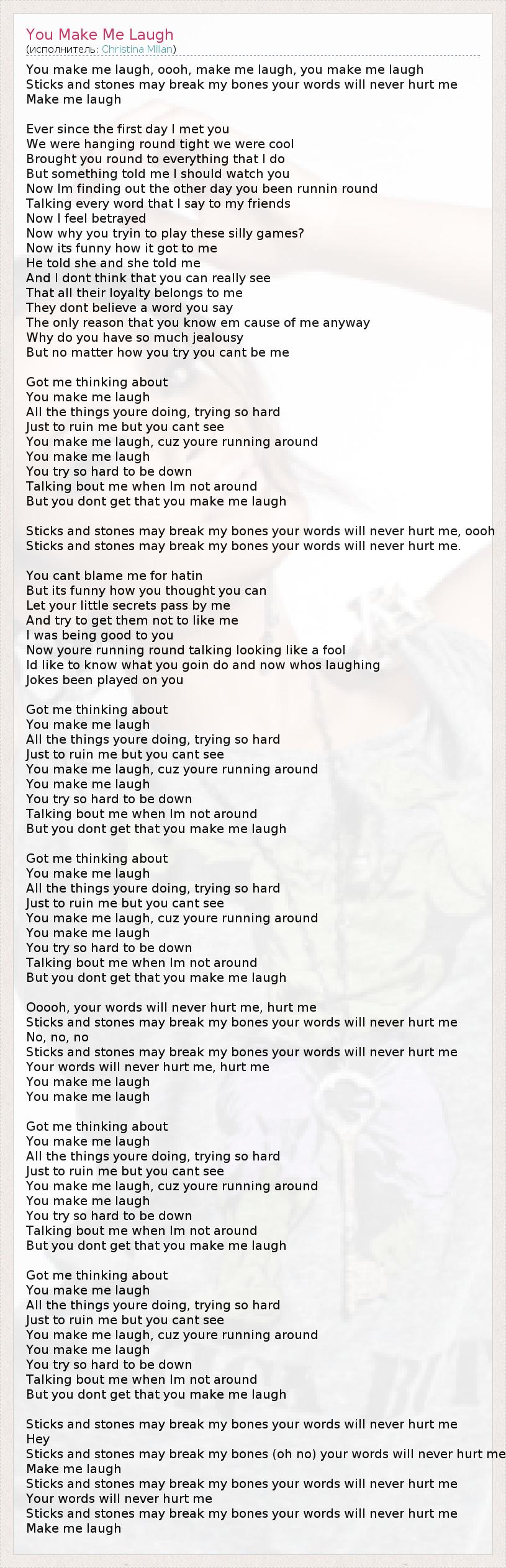 А как ты думаешь, о чем песня "You Make Me Laugh" ?