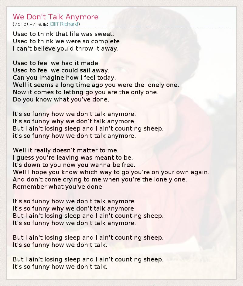 А как ты думаешь, о чем песня "We Don't Talk Anymore" ?
