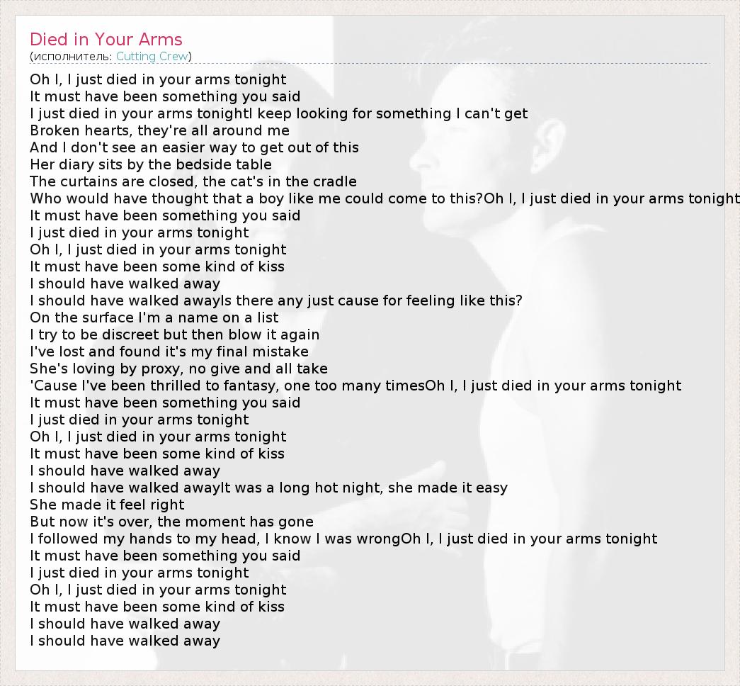 А как ты думаешь, о чем песня "Died in Your Arms" ?