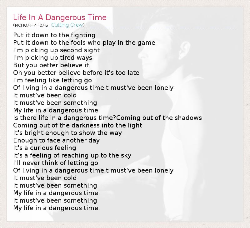 А как ты думаешь, о чем песня "Life In A Dangerous Time" ?