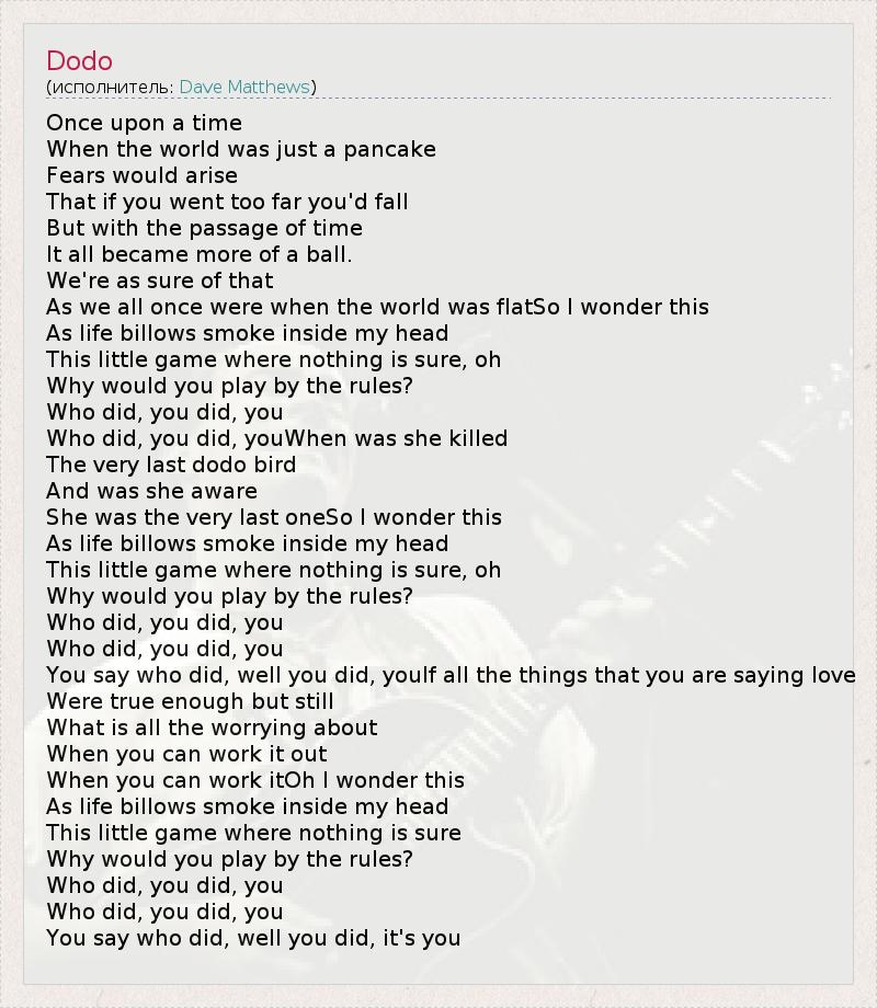 А как ты думаешь, о чем песня "Dodo" ?