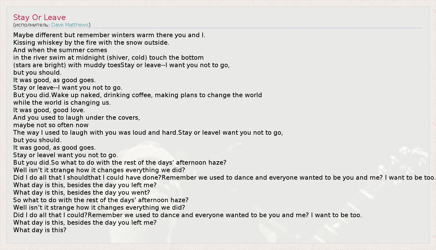 А как ты думаешь, о чем песня "Stay Or Leave" ?