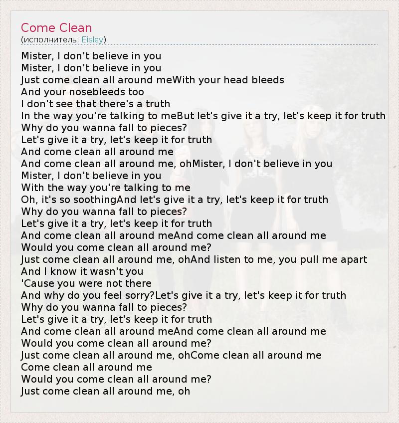 Just come clean all around me, ohAnd listen to me, you pull me apart