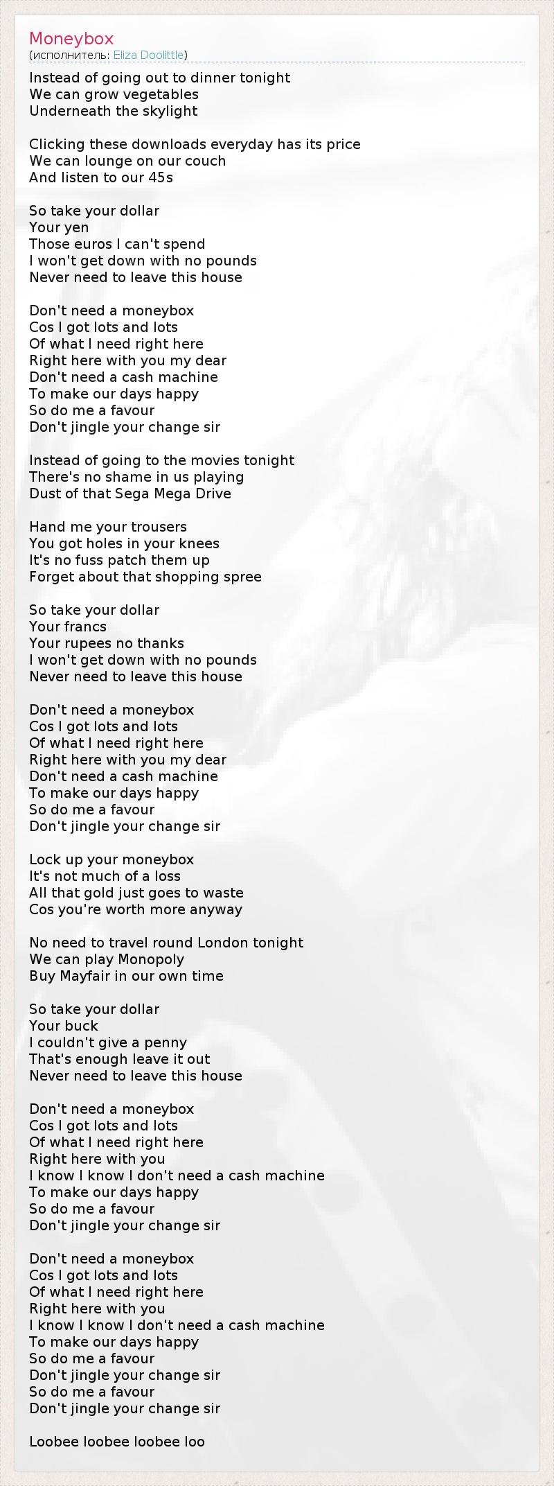 Это интересно:Элиза Дулитл (урожденная Софи Элиза Кэрд, 15 апреля 1988 года), является британской певицей и автором песен из Лондона. Она подписала контракт с лейблом Parlophone. Ее дебютный, одноименный альбом, Элиза Дулитл выпустила 12 июля 2010 года. Ее дебют был на 3-ем месте в британских чартах. После выпуска альбома еще две ее записи попали в топ-25 в чарте, включая ее сингл "Skinny Genes". Второй сингл, "Pack Up",... продолжение