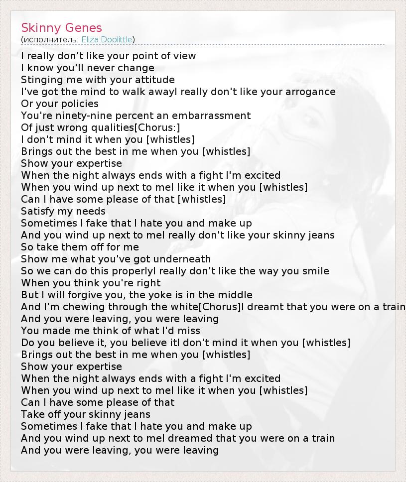 А как ты думаешь, о чем песня "Skinny Genes" ?