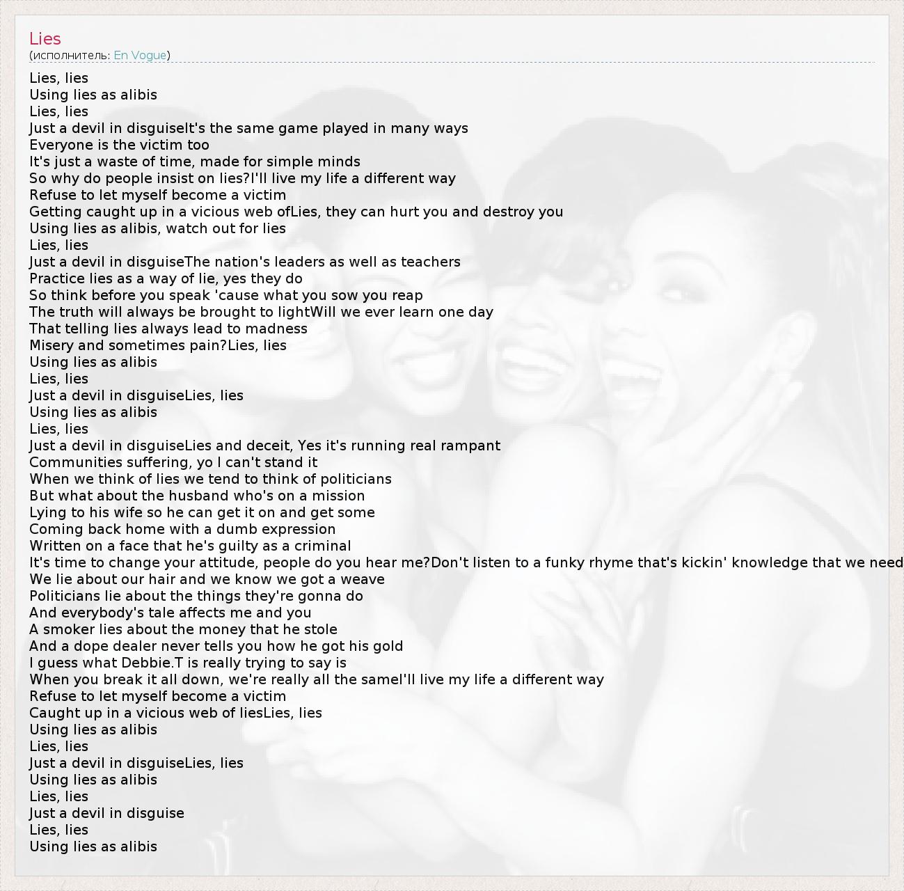 Это интересно:ЭН ВОГ (En Vogue), американский женский ар-энд-би-квартет. Образован в 1988. Состав: Дон Робинсон (Dawn Robinson), Терри Эллис (Terry Ellis), Синди Херрон (Cindy Herron), Мэксин Джонс (Maxine Jones). EN VOGUE был сформирован в Окленде, Калифорния. Проект появился в момент развития новой эры хип-хопа и рэпа, благодаря заслуге двух известных продюсеров Дензила Фостера и Томаса Макилроя. Из собравшегося коллектива EN VOGUE, только... продолжение