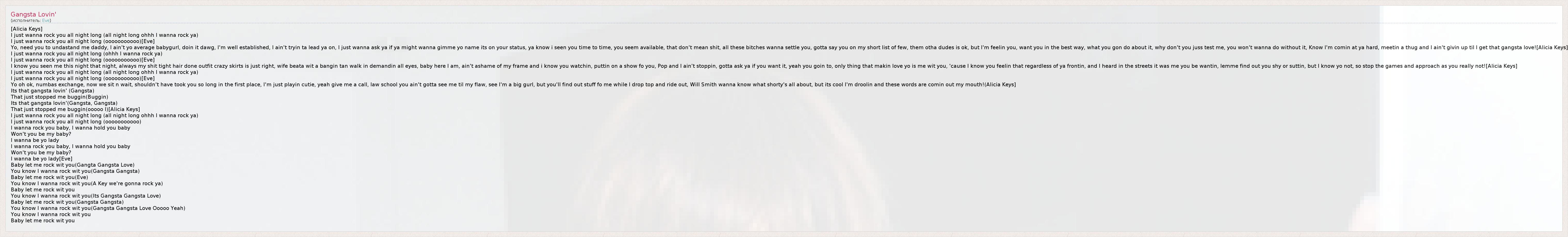 А как ты думаешь, о чем песня "Gangsta Lovin'" ?