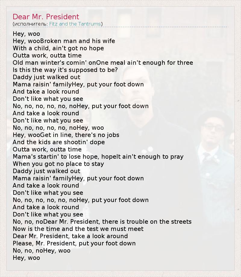 А как ты думаешь, о чем песня "Dear Mr. President" ?