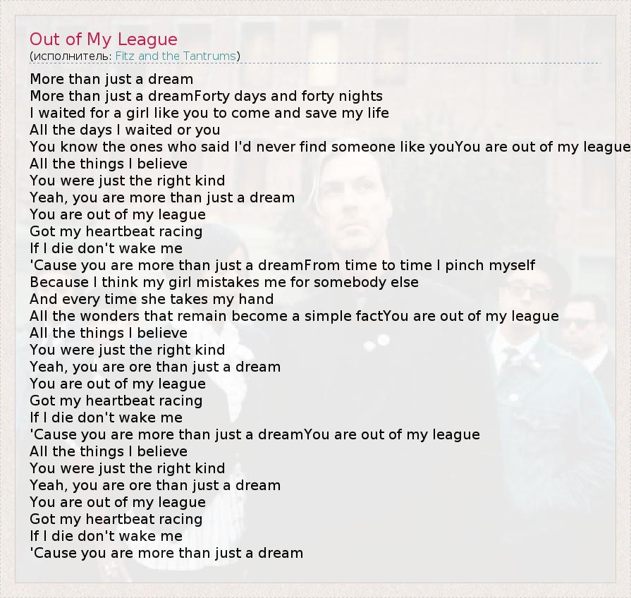 А как ты думаешь, о чем песня "Out of My League" ?