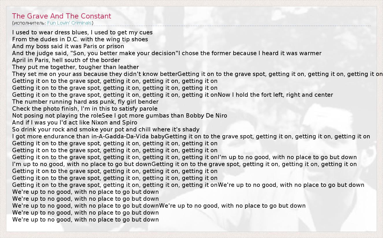 А как ты думаешь, о чем песня "The Grave And The Constant" ?