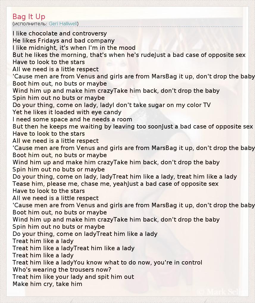 А как ты думаешь, о чем песня "Bag It Up" ?