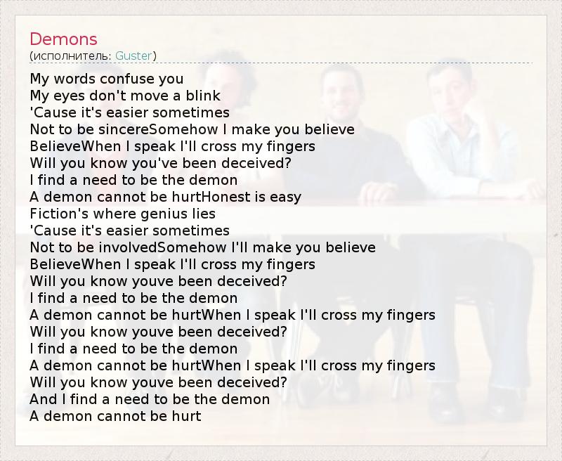 A demon cannot be hurtWhen I speak I'll cross my fingers