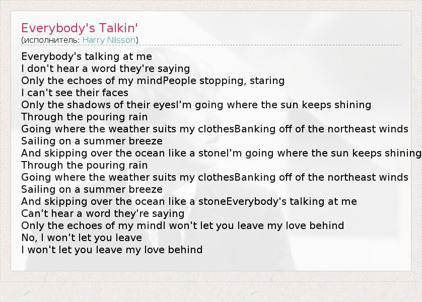 А как ты думаешь, о чем песня "Everybody's Talkin'" ?