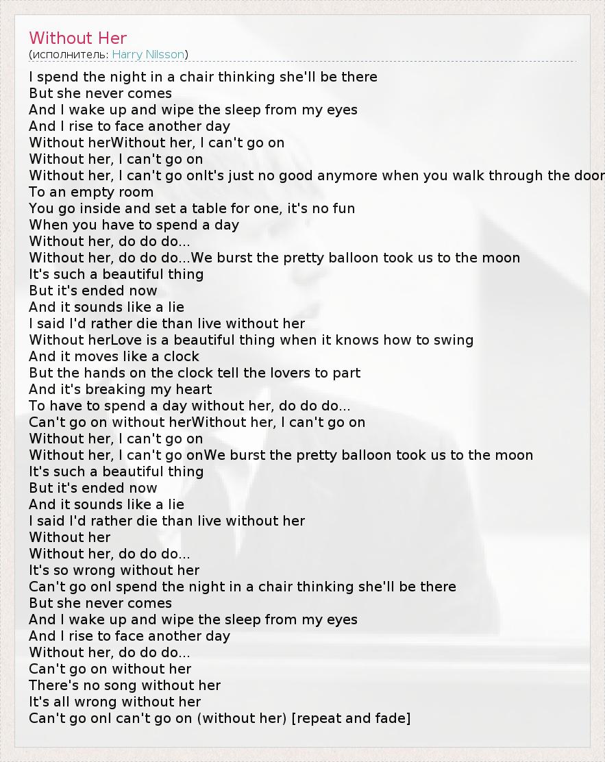 Without her, do do do...We burst the pretty balloon took us to the moon