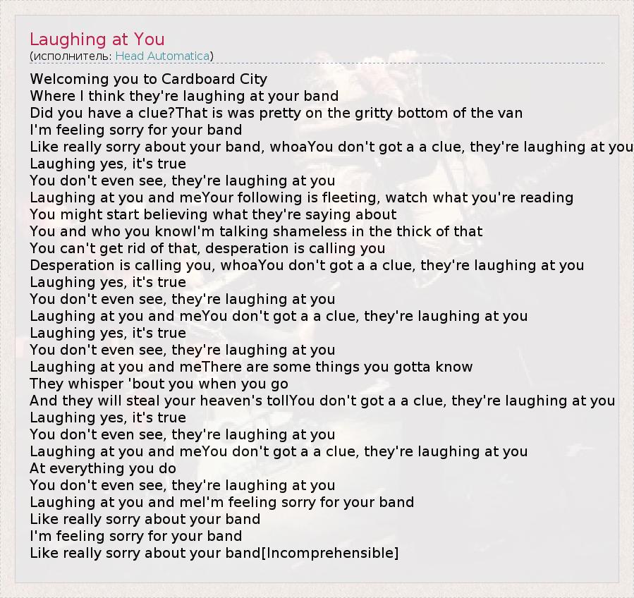А как ты думаешь, о чем песня "Laughing at You" ?