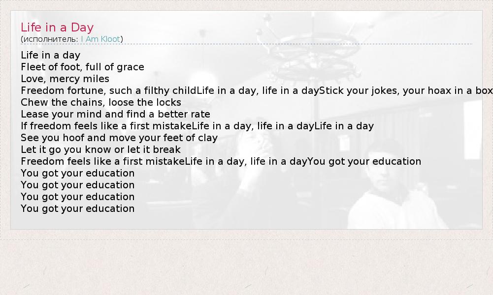 А как ты думаешь, о чем песня "Life in a Day" ?