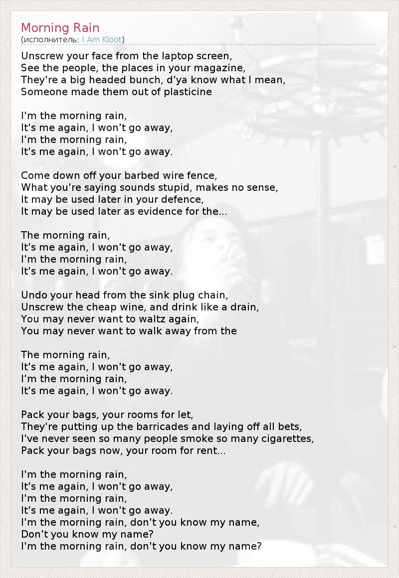 А как ты думаешь, о чем песня "Morning Rain" ?
