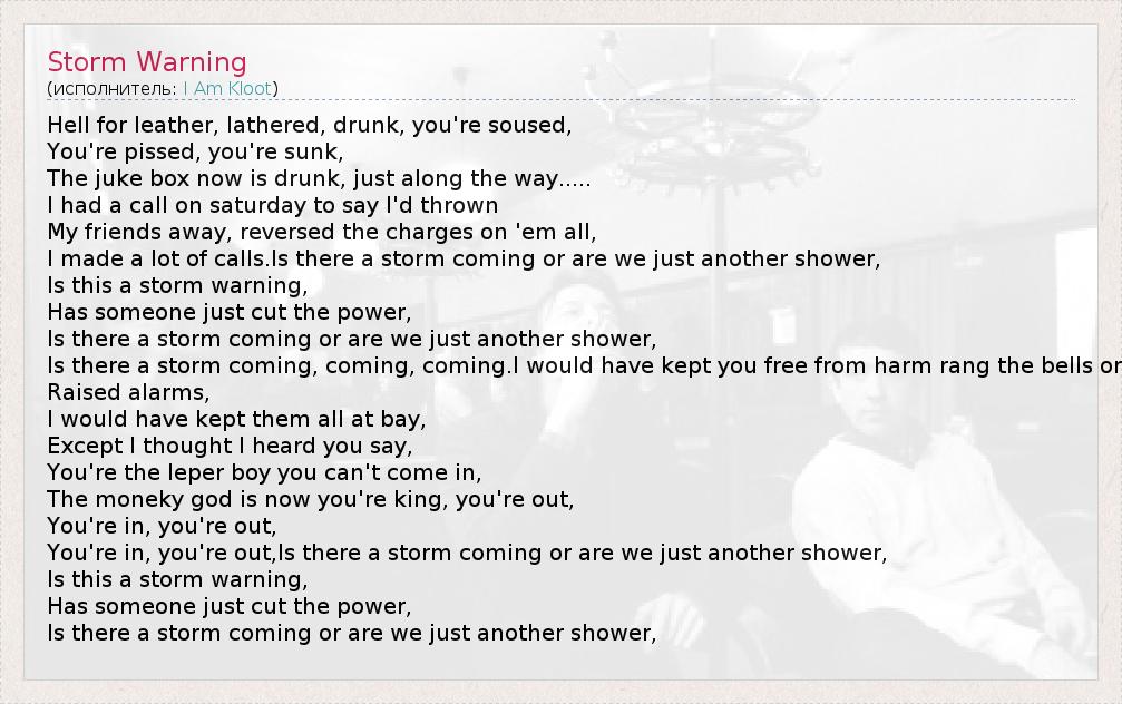 А как ты думаешь, о чем песня "Storm Warning" ?