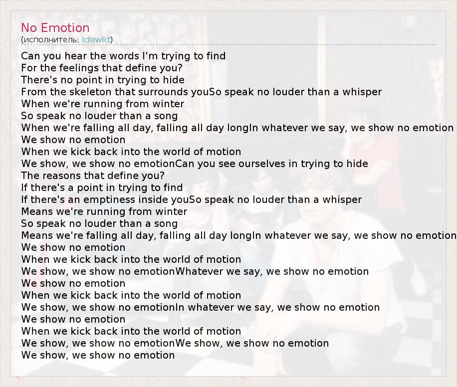 Means we're falling all day, falling all day longIn whatever we say, we show no emotion