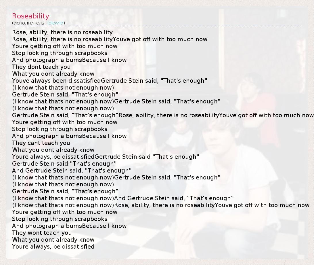 Gertrude Stein said, "That's enough"Rose, ability, there is no roseabilityYouve got off with too much now