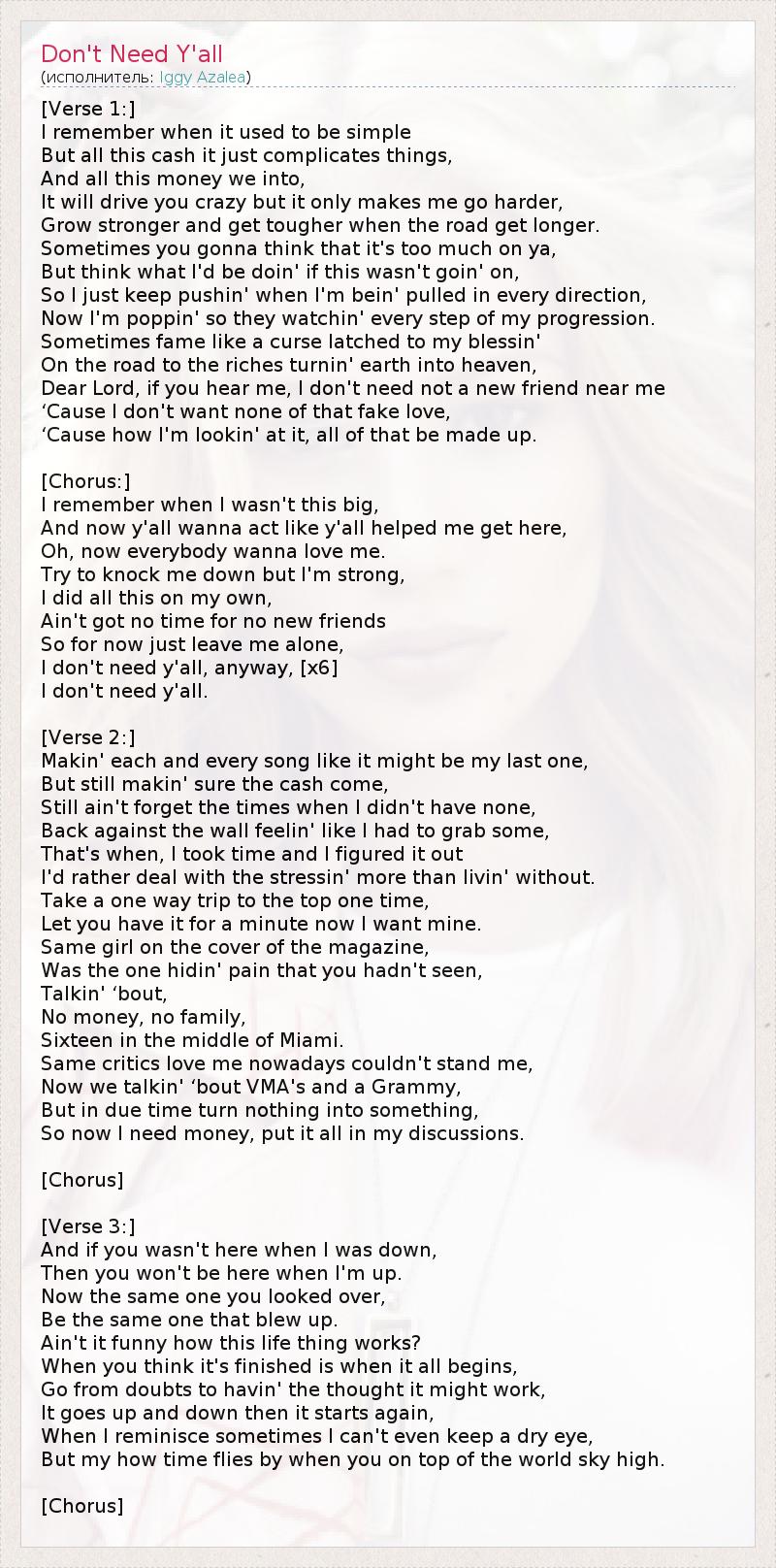 А как ты думаешь, о чем песня "Don't Need Y'all" ?
