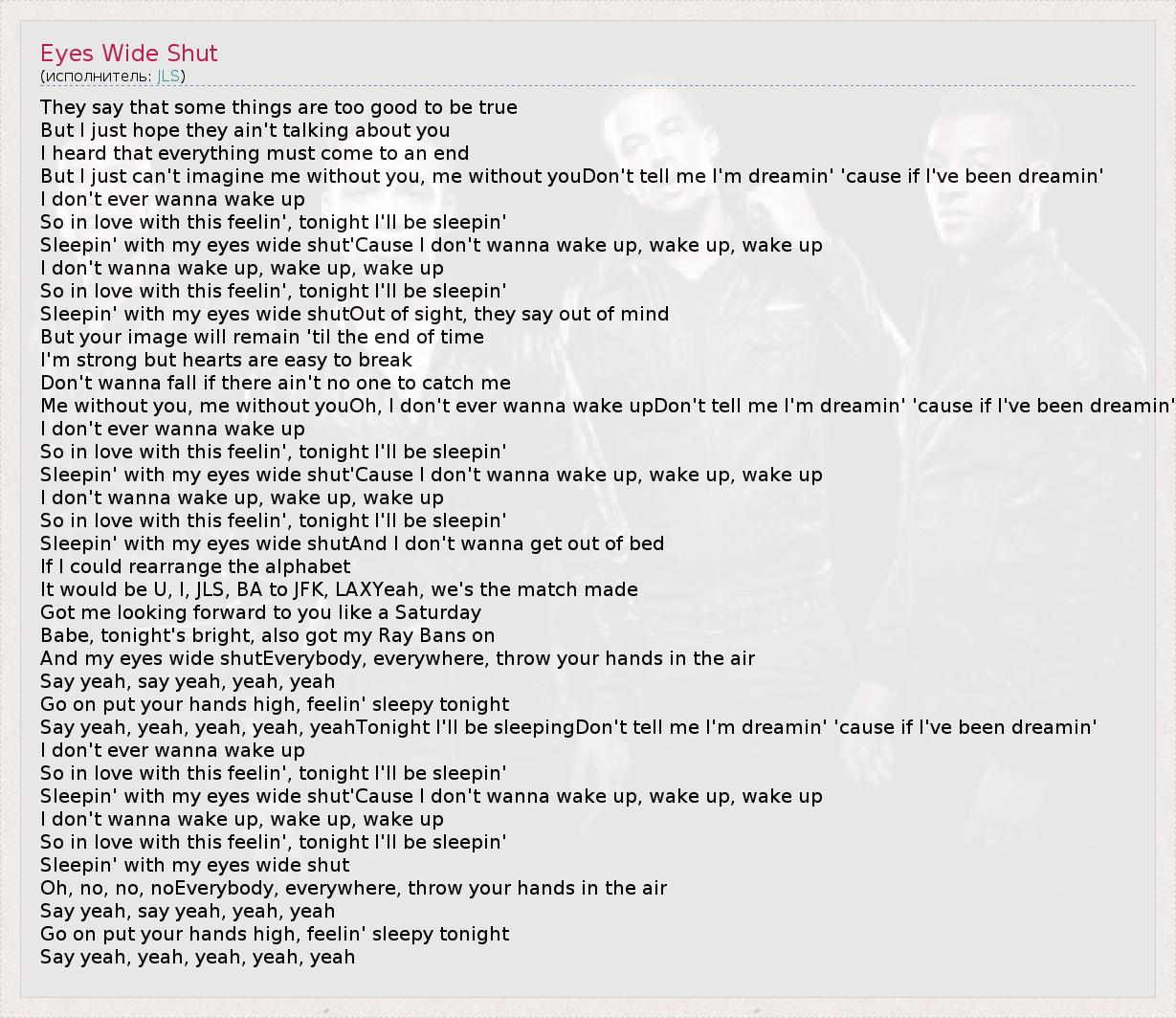 А как ты думаешь, о чем песня "Eyes Wide Shut" ?