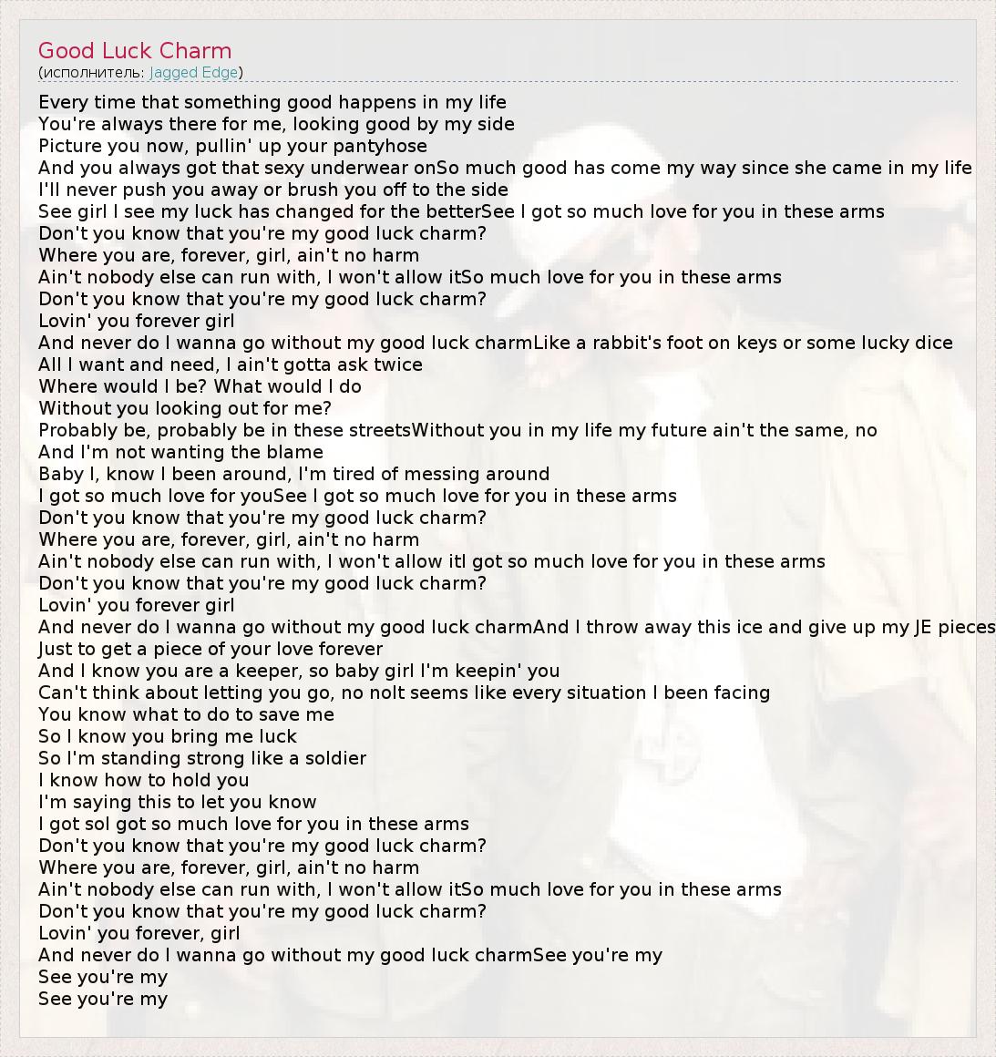 А как ты думаешь, о чем песня "Good Luck Charm" ?