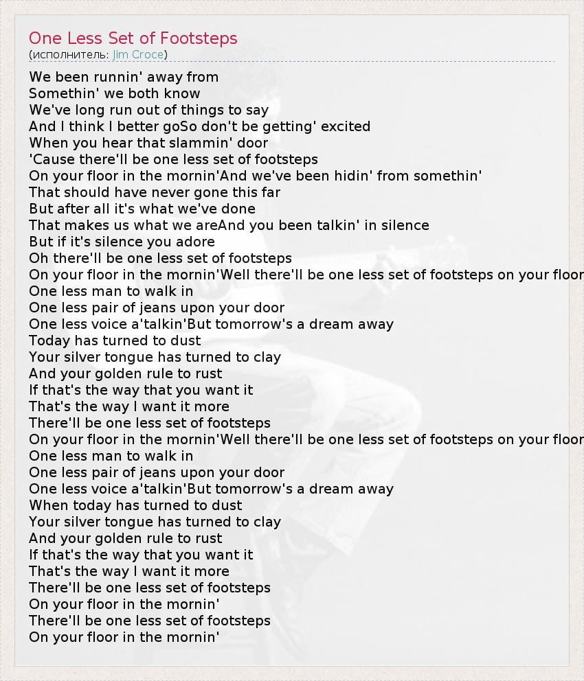ГлавнаяИсполнителиJim CroceOne Less Set of Footsteps