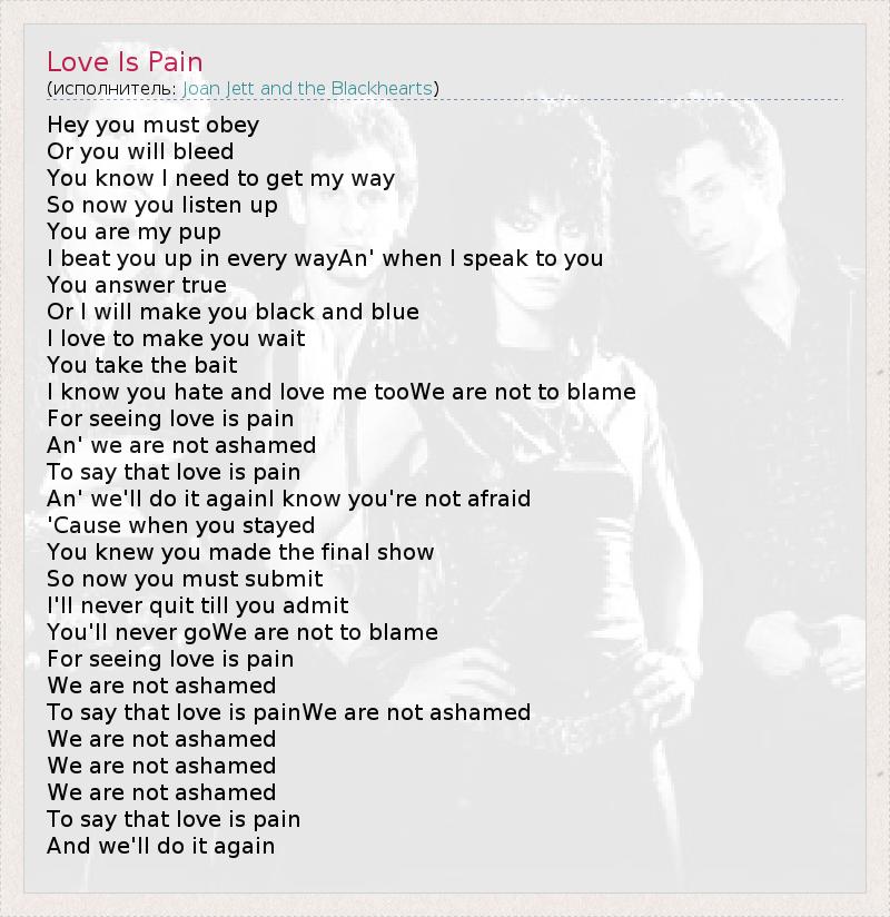 А как ты думаешь, о чем песня "Love Is Pain" ?