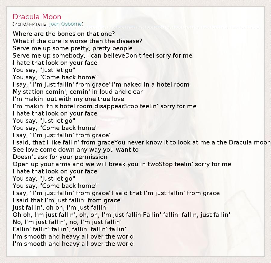I said, that I like fallin' from graceYou never know it to look at me a the Dracula moon