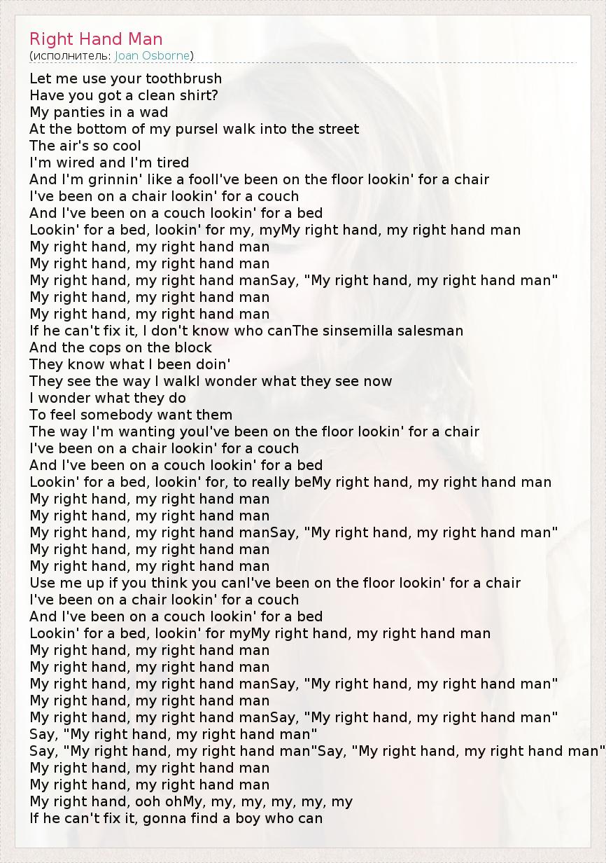 А как ты думаешь, о чем песня "Right Hand Man" ?