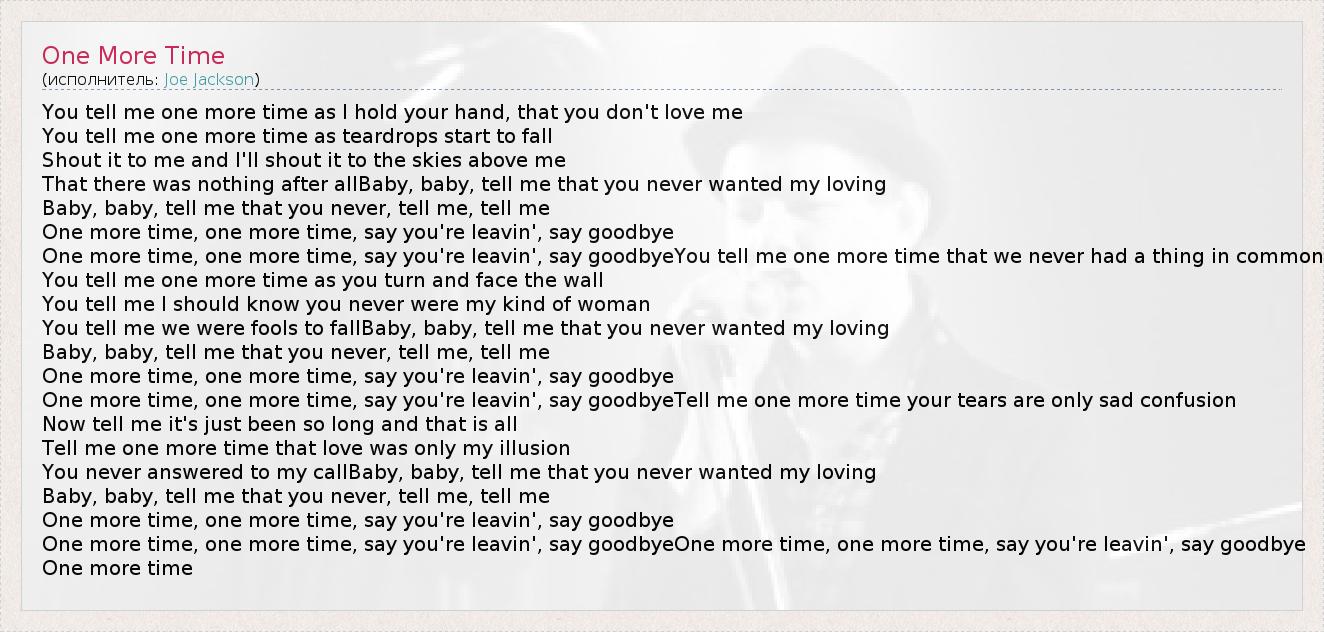 One more time, one more time, say you're leavin', say goodbye