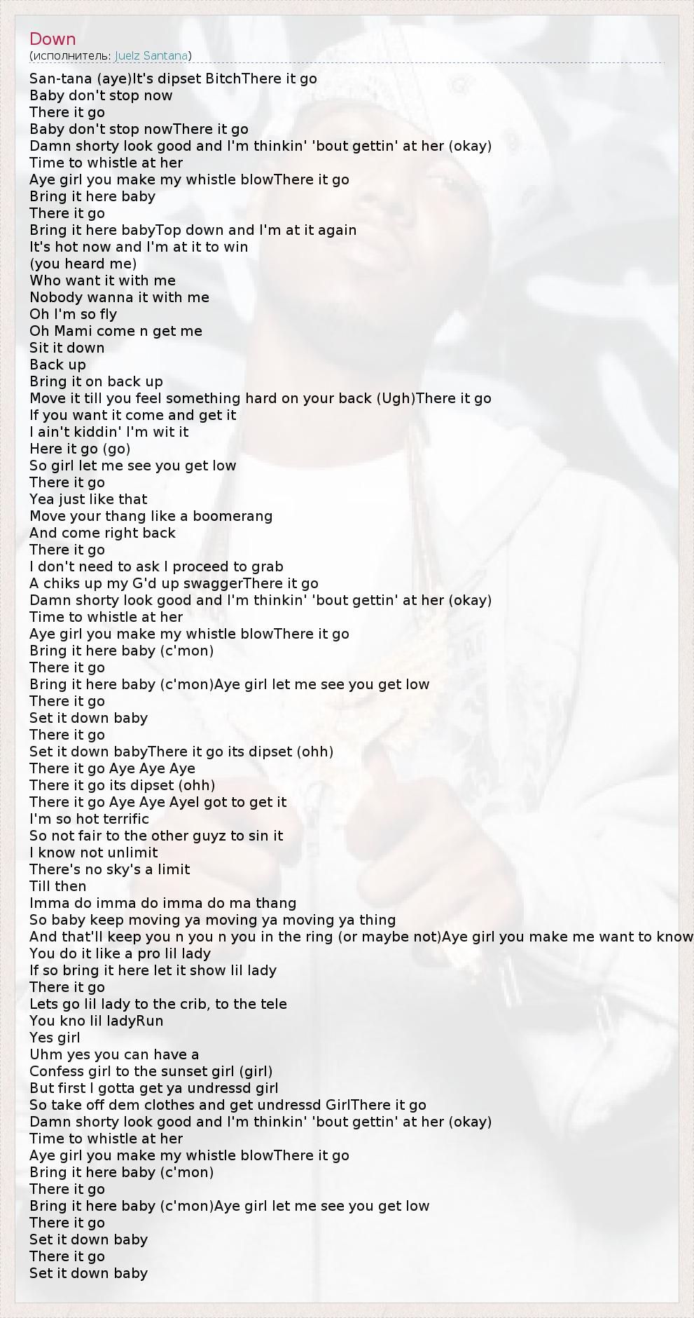 Это интересно:Настоящее имя Juelz Santana LaRon James. В связи с этим часто в среде журналистов слышны сравнения с LeBron James, новым неудачником баскетбола. Santana начал читать еще в юном возрасте, ему было всего 12 лет, когда он создал свою первую группу Draft Pick. Слава B.G. и Lil Wayne, которые тоже, будучи тинейджерами, получили свои контракты, видимо, не давала ему спать. В конце концов, своего он добился, подписавшись на Priority.... продолжение
