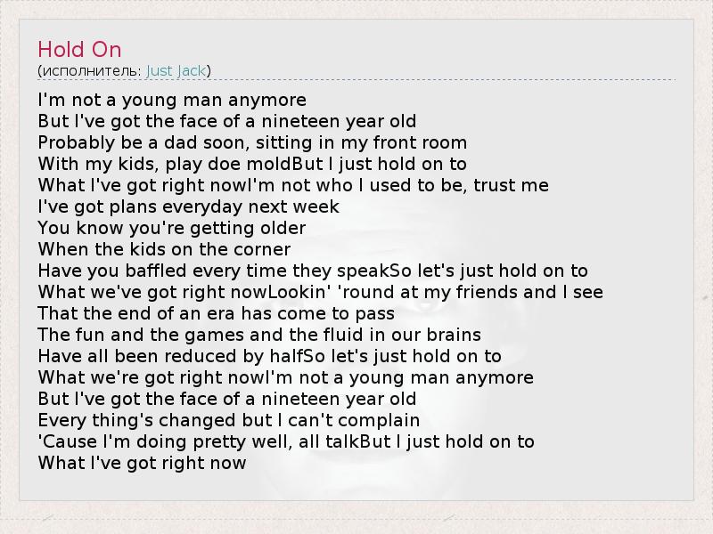 'Cause I'm doing pretty well, all talkBut I just hold on to
