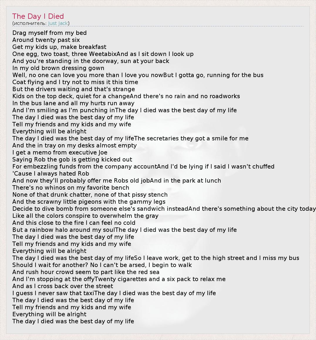 А как ты думаешь, о чем песня "The Day I Died" ?