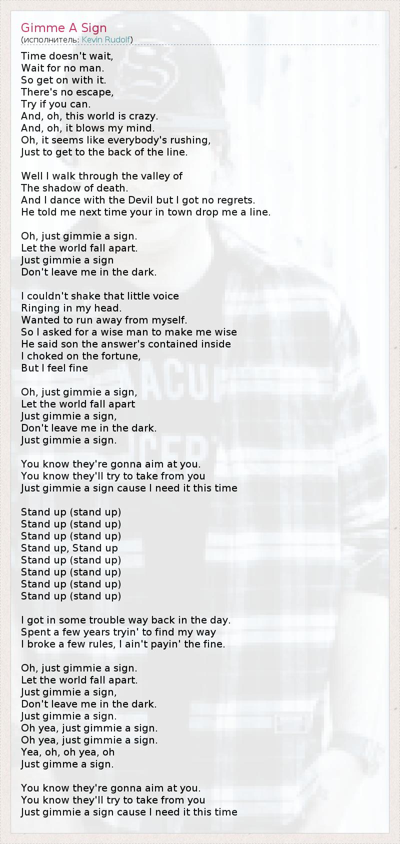 А как ты думаешь, о чем песня "Gimme A Sign" ?