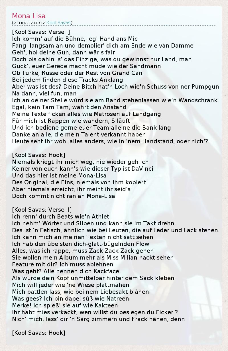 А как ты думаешь, о чем песня "Mona Lisa" ?