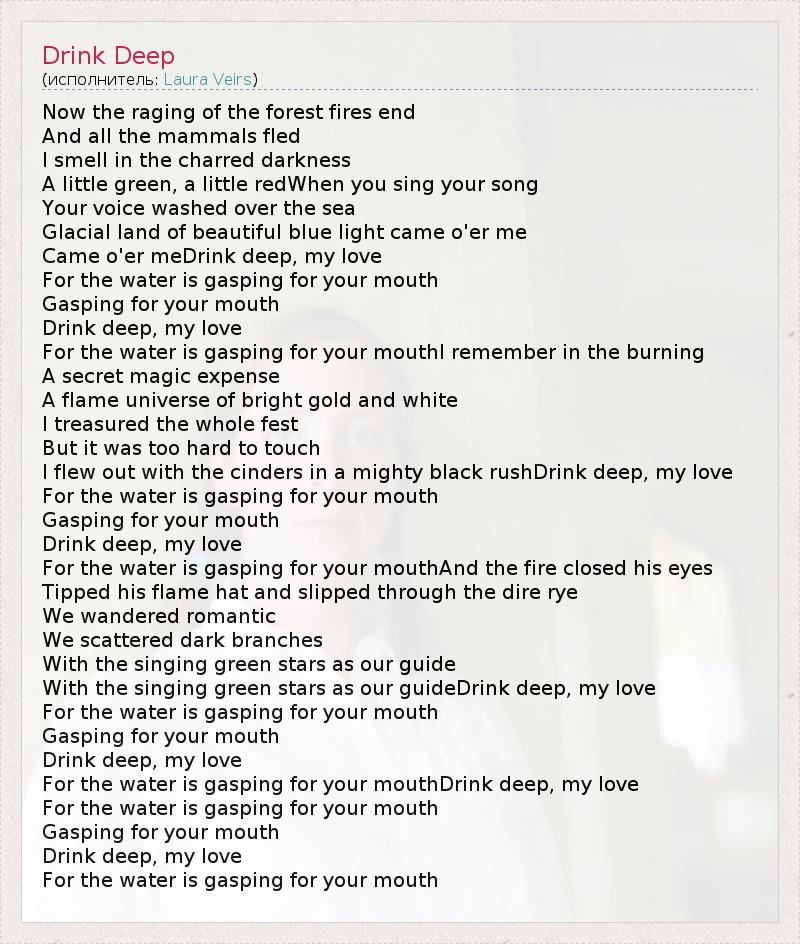 А как ты думаешь, о чем песня "Drink Deep" ?