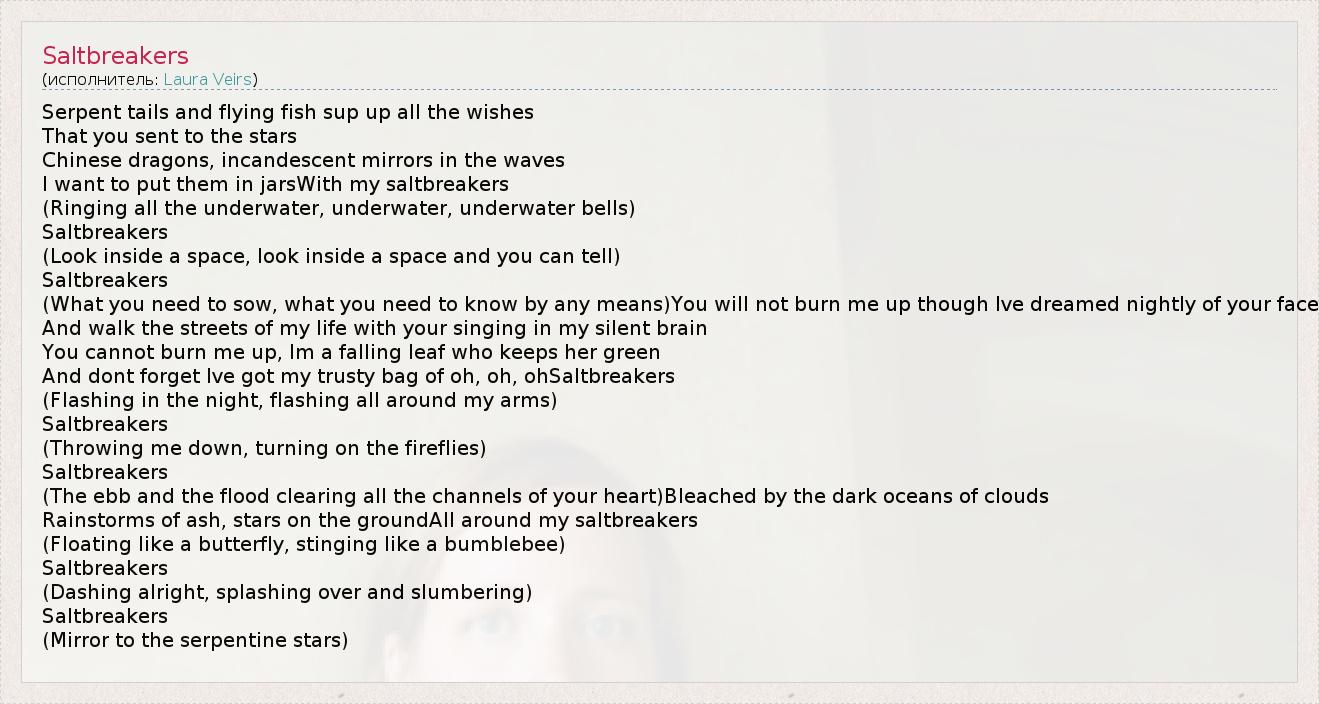 А как ты думаешь, о чем песня "Saltbreakers" ?