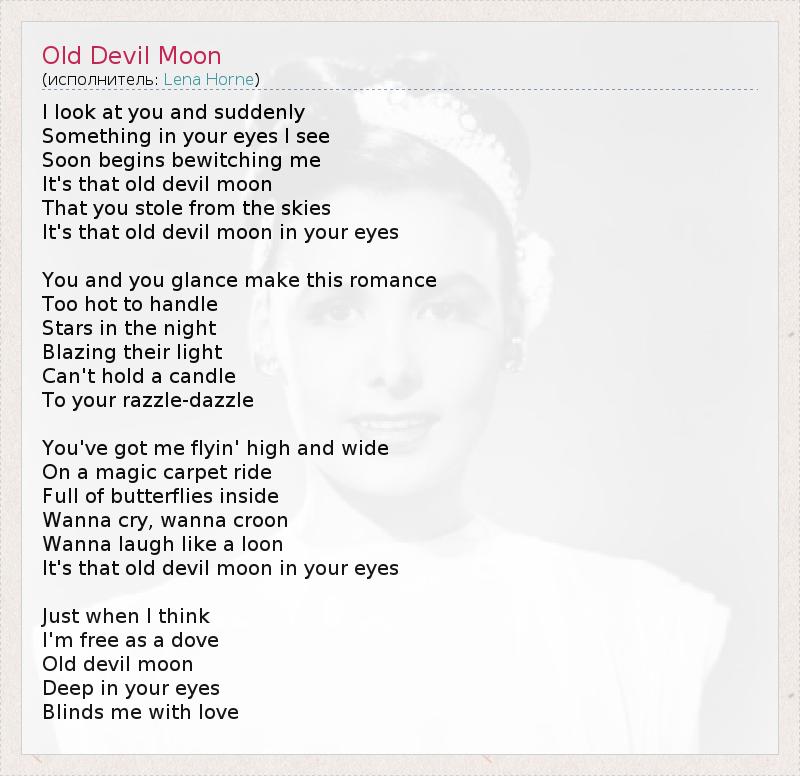 А как ты думаешь, о чем песня "Old Devil Moon" ?