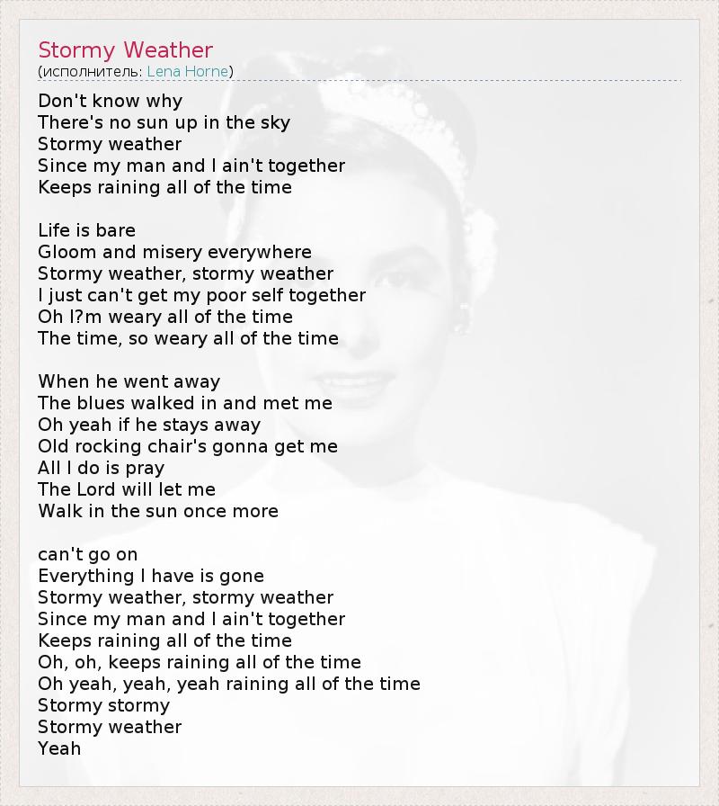 А как ты думаешь, о чем песня "Stormy Weather" ?